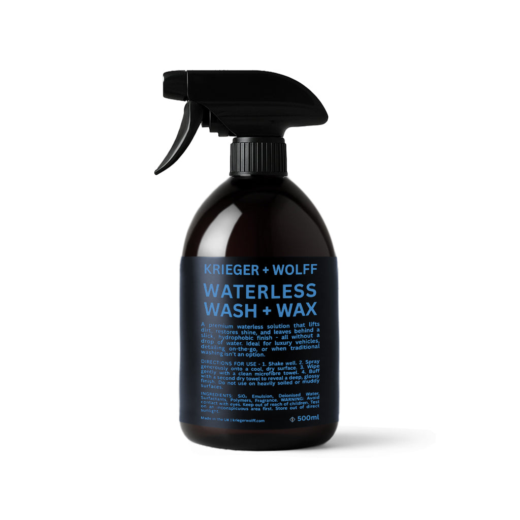 A premium Waterless solution that lifts dirt, restores shine, and leaves behind a slick, hydrophobic finish - all without a drop of water. Ideal for luxury vehicles, detailing on-the-go, or when traditional washing isn’t an option.